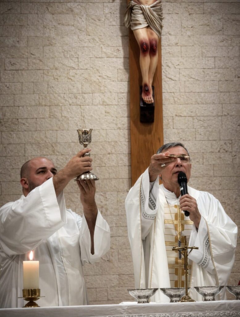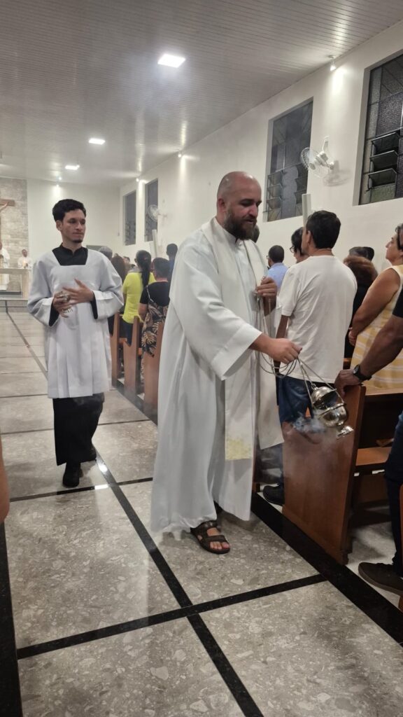 O momento mais solene da celebração foi a bênção do altar e do ambão, rito profundamente simbólico na tradição da Igreja. O altar representa o próprio Cristo, pedra viva, e é o lugar onde se torna presente o sacrifício eucarístico. Durante o rito, o altar é ungido com o santo crisma, incensado e revestido, tornando-se definitivamente dedicado ao culto divino e o ambão a mesa da Palavra, de onde o Senhor nos fala e conduz o seu povo.
