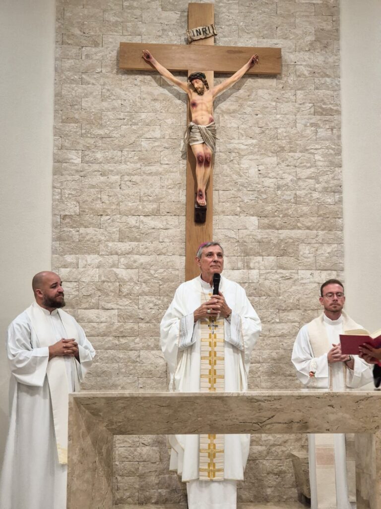 A celebração presidida pelo Bispo Diocesano foi conduzida com grande participação dos fiéis, sob a orientação do administrador paroquial, Padre Richard Oliveira, que acompanhou de perto todo o processo de reforma e preparação para este momento histórico.