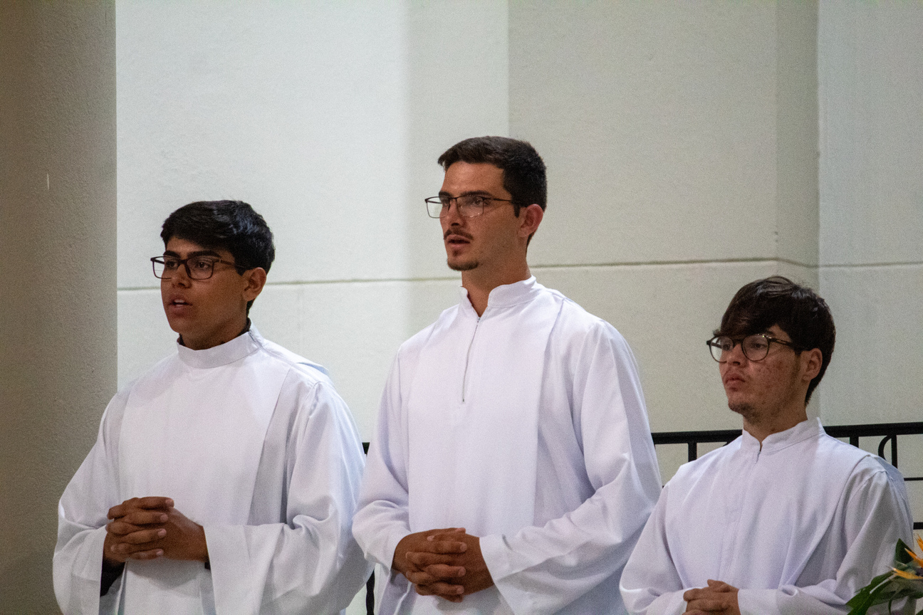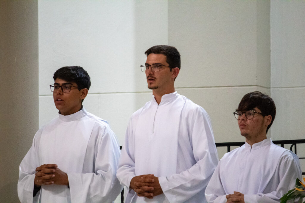 Na ocasião, foram acolhidos seis novos seminaristas, que iniciam o tempo do Propedêutico, período dedicado ao discernimento, à escuta e ao aprofundamento da vocação sacerdotal. Ingressaram neste caminho formativo: Fernando, da cidade de Nova Resende; Gustavo, de Cássia; Jean Lucas, de Areado; Thiago e Lukian, de Alpinópolis; e Thiago, de Poços de Caldas.