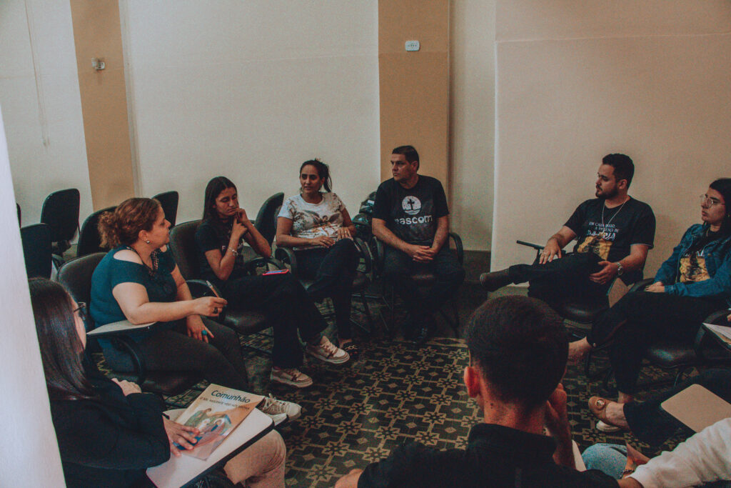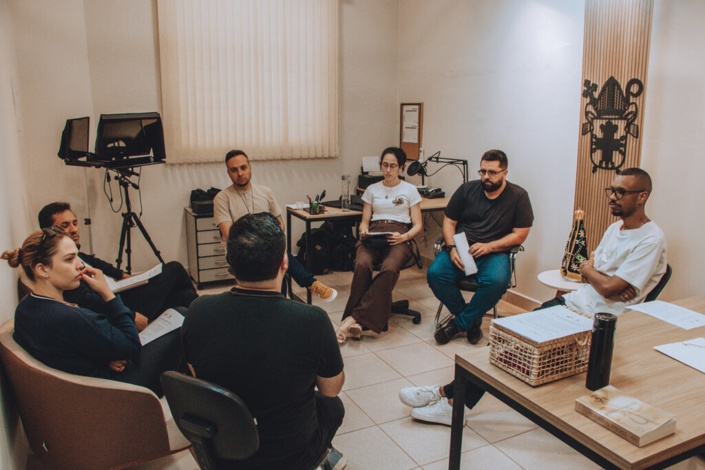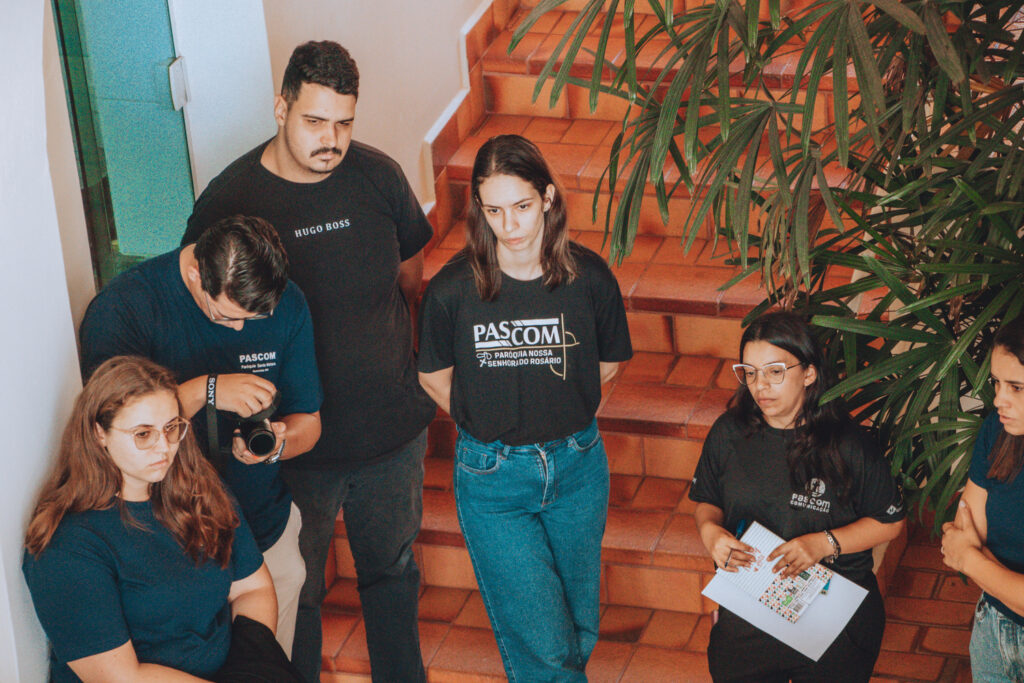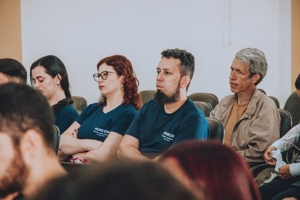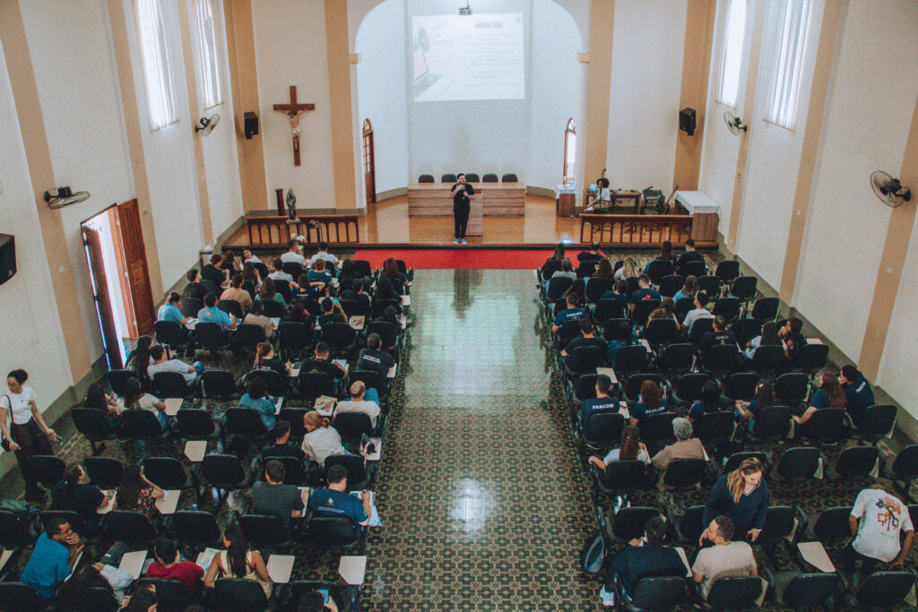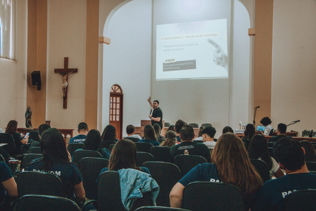 Em seguida, os participantes participaram de uma formação ministrada por Gabriel Desperta, que refletiu sobre a missão do agente de comunicação, a organização das equipes paroquiais da Pascom e a importância do planejamento pastoral na comunicação eclesial.
