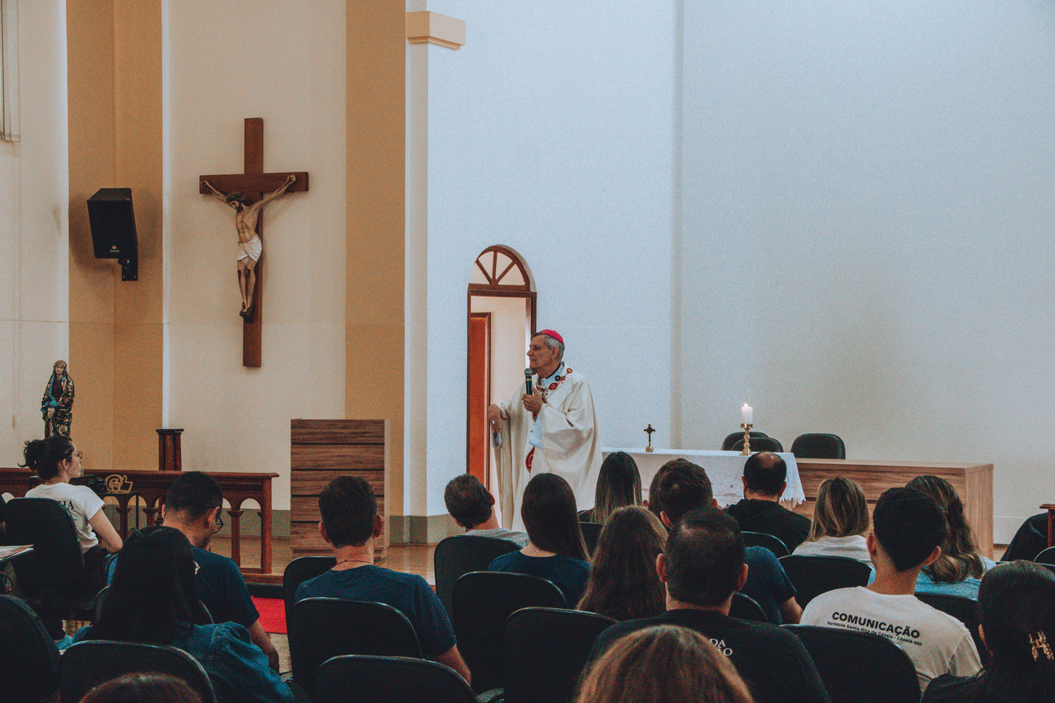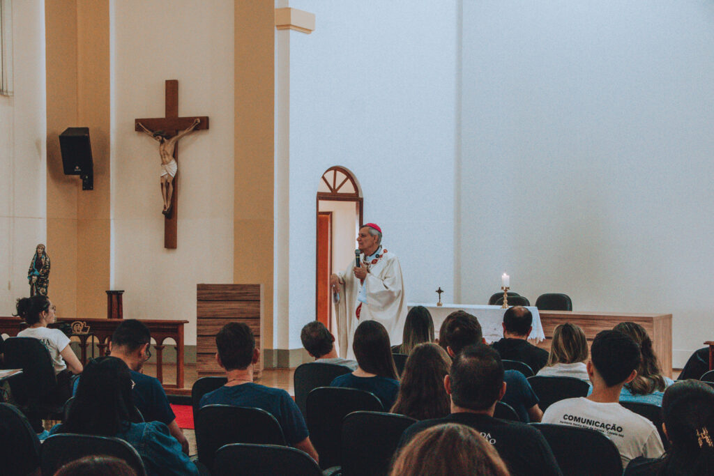O encontro teve início com a Santa Missa presidida por Dom José Lanza, Bispo Diocesano, que em sua homilia destacou a importância e a seriedade da comunicação como instrumento de evangelização e serviço à verdade.