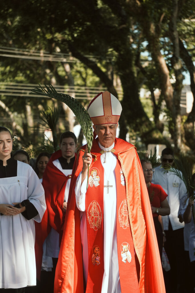 Durante a celebração, os fiéis participaram da bênção dos ramos e da procissão, sinais visíveis da acolhida a Cristo como Rei e Salvador. Em sua homilia, o bispo destacou a importância de viver este tempo com autenticidade, convidando todos a acompanharem Jesus não apenas nos momentos de glória, mas também no caminho da cruz.