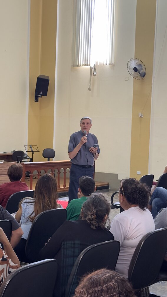 Aconteceu no dia 21 de Setembro de 2025, na Cúria Diocesana de Guaxupé o Encontro Diocesano dos Grupos Bíblicos de Reflexão. Animadores e Animadoras dos sete setores pastorais da Diocese se fizeram presentes. O Encontro iniciou-se com a Santa Missa as 8h presidida por Pe Francisco Albertin. Logo após Pe Alexandre refletiu sobre o tema: “Sinodalidade e Esperança” focalizando que os Grupos Bíblicos de Reflexão contempla em si todo o Plano Pastoral da Diocese: Vida Comunitária, Formação, Promoção Humana, catequese e Liturgia. Logo após Dom José Lanza dirigiu sua Palavra de acolhida e Pastor, refletindo sobre a questão de saber Administrar os dons e talentos a serviço do Reino de Deus através da Palavra e da Eucaristia. Pequeno trabalho em grupo sobre o texto do Juízo Final de Mateus 25,31-46. Tivemos a participação de 121 pessoas e foi um momento de fé, união, amor e esperança de construir o tão sonhado Reino de Deus no meio de nós.