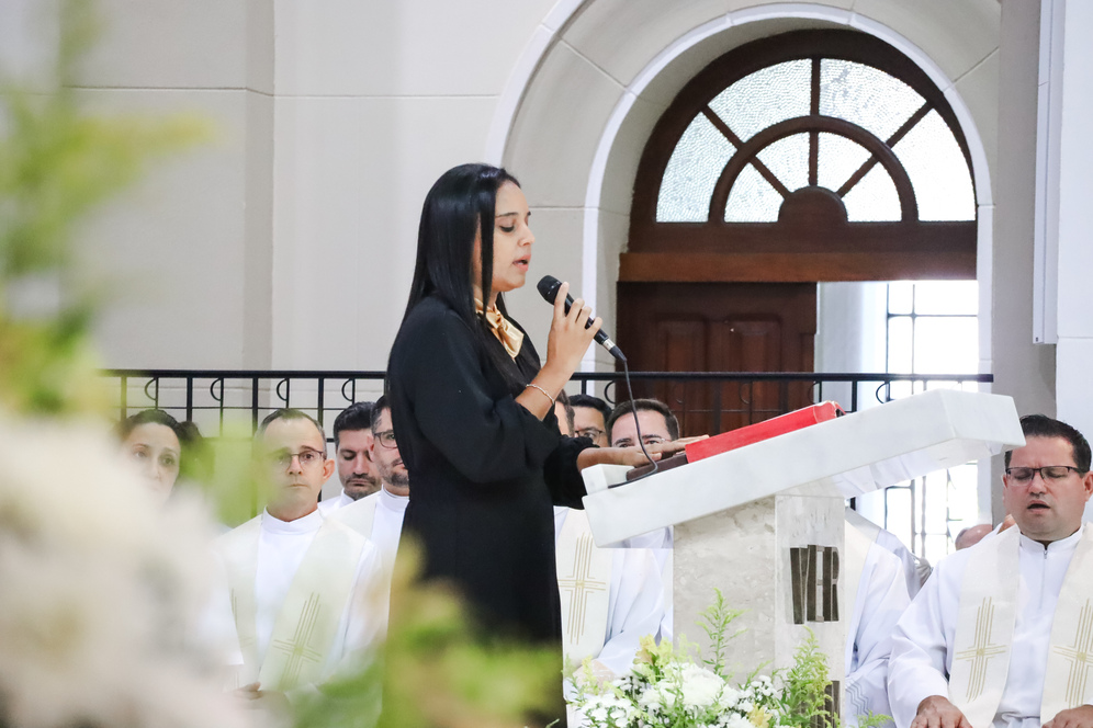 “Irmãos, queridas irmãs, referendíssimo Padre Alexandre, com essa celebração de hoje, nós estamos entrando no mistério central da nossa fé, a Páscoa da ...