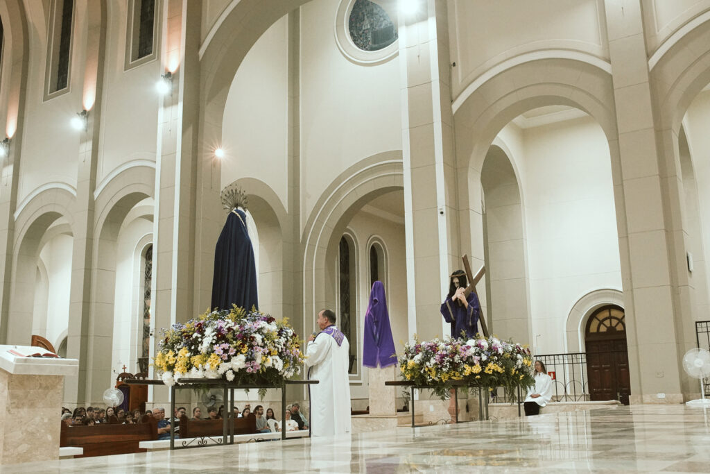 A reflexão convidou os fiéis a contemplarem esse encontro como expressão da fidelidade e da esperança, mesmo diante da dor. Assim como Maria permaneceu firme junto ao seu Filho, também os cristãos são chamados a perseverar na fé, confiando que o caminho da cruz conduz à vida nova. A celebração reforçou o espírito da Semana Santa, conduzindo a comunidade a viver com maior profundidade o mistério do amor redentor de Cristo.