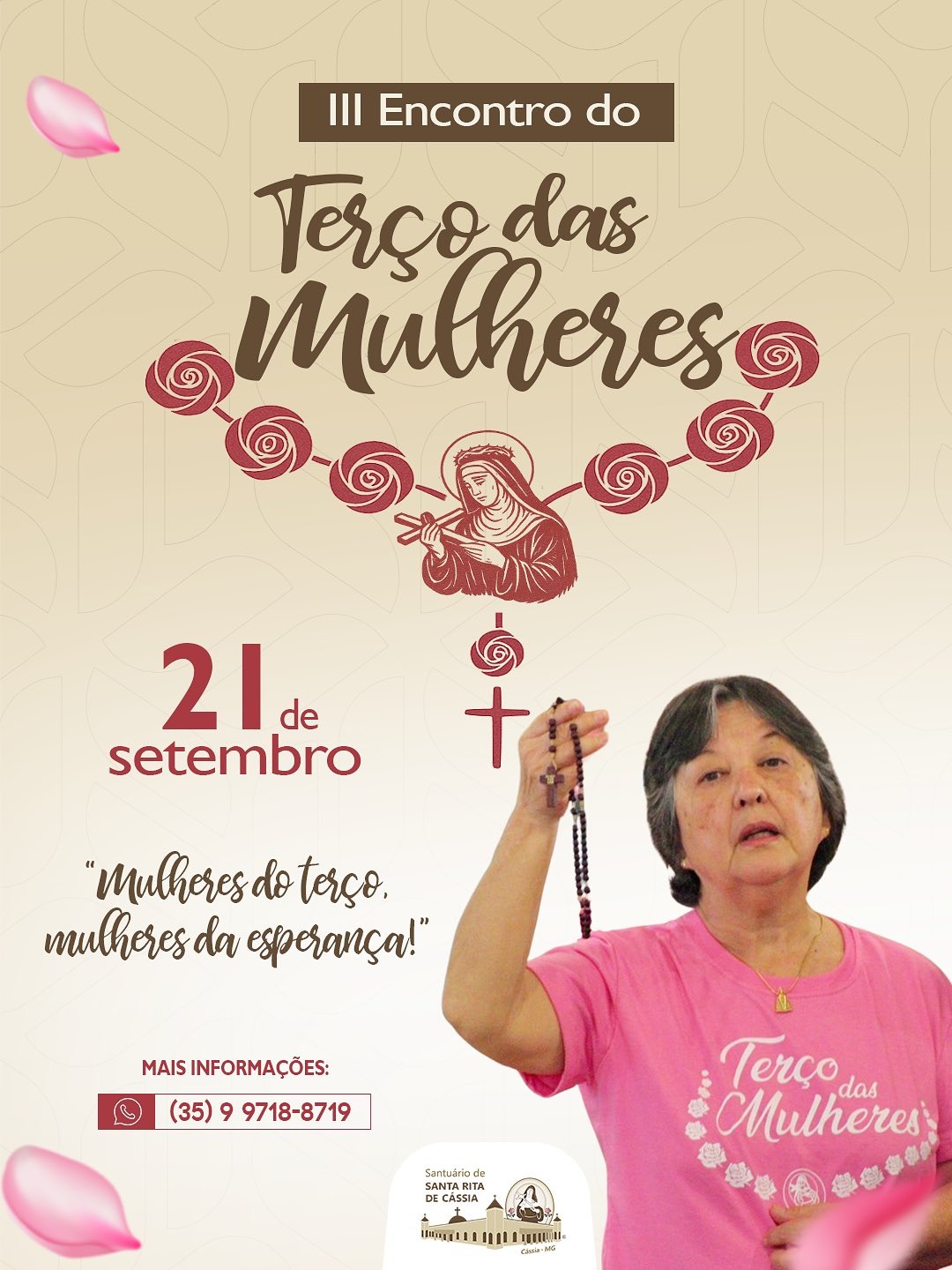 Com grande alegria, no próximo domingo, 21 de setembro, o Santuário de Cássia, em Cássia (MG), acolherá o 3° Encontro do Terço das Mulheres.